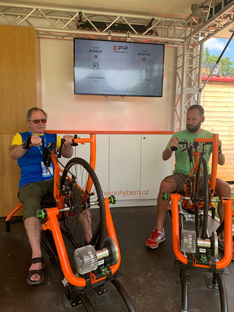 Včera jsme byli na světovém poháru v Troji, kde nadace Lentinka měla stánek a tak jsme jí pomáhali při prezentaci a shánění peněz. Vždy jsi jel minutu a metry se měnily na koruny, které pak věnoval ČEZ. Jen pro zajímavost já jel třikrát a měl jsem toho opravdu dost.